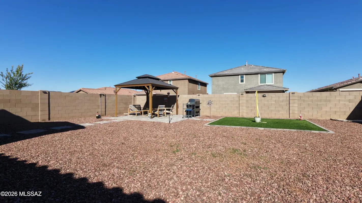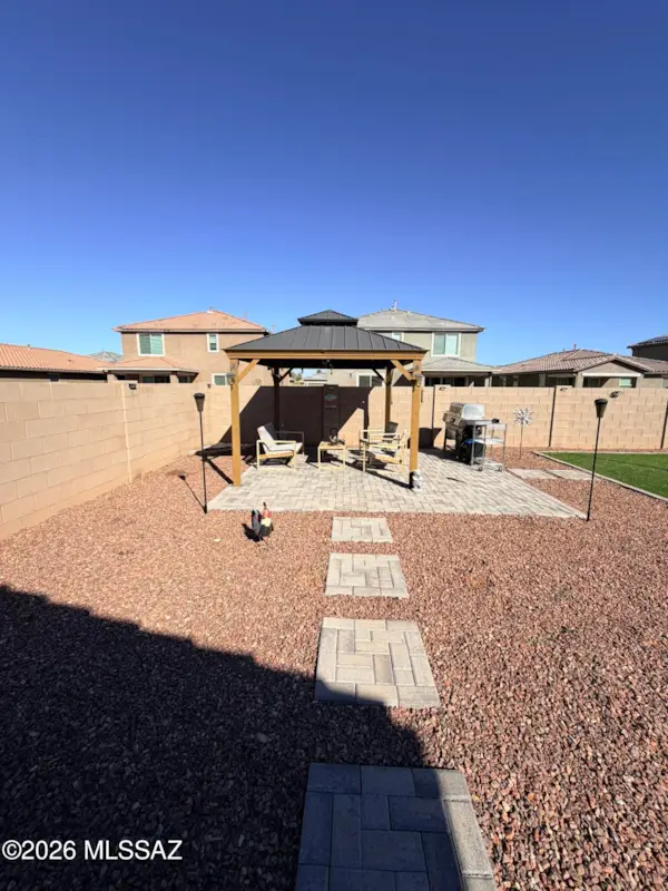 Welcome to this beautiful home in the desirable Red Rock Village community, offering 3 bedrooms, 2 bathrooms, a thoughtful design, and access to outstanding neighborhood amenities. This inviting home features an open‑concept layout with abundant natural light, a spacious great room, and a well‑appointed kitchen perfect for everyday living or entertaining. The split-bedroom floor plan provides privacy, with a generous primary suite that includes a walking closet and an en‑suite bath. Step outside to a private backyard with plenty of room to relax under the gazebo. Whether you envision quiet evenings under the stars or weekend gatherings, this yard is ready for it. Residents of Red Rock Village enjoy access to parks, walking paths, a community pool, and a welcoming neighbor