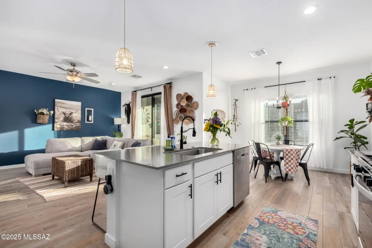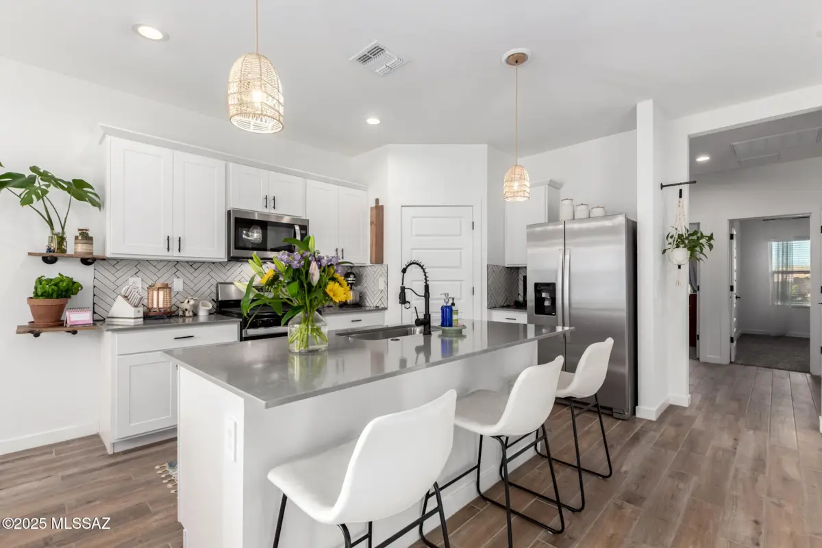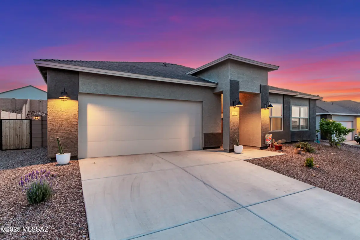 The backsplash has been thoughtfully removed, providing a clean slate for the next owner to customize the kitchen to their own taste and style!This property offers an exceptional opportunity in a USDA-eligible area with a 0% down payment option. Meticulously maintained, the home combines modern touches with comfort, featuring a spacious layout and a primary suite with two walk-in closets for ample storage. The peaceful, fully landscaped backyard, designed with low-maintenance desert plants, is a serene oasis where you can relax and enjoy stunning views of Southeast Tucson. With modern features, a tranquil backyard, and unbeatable financing options, this home is a must-see. Don't miss out on making it yours!