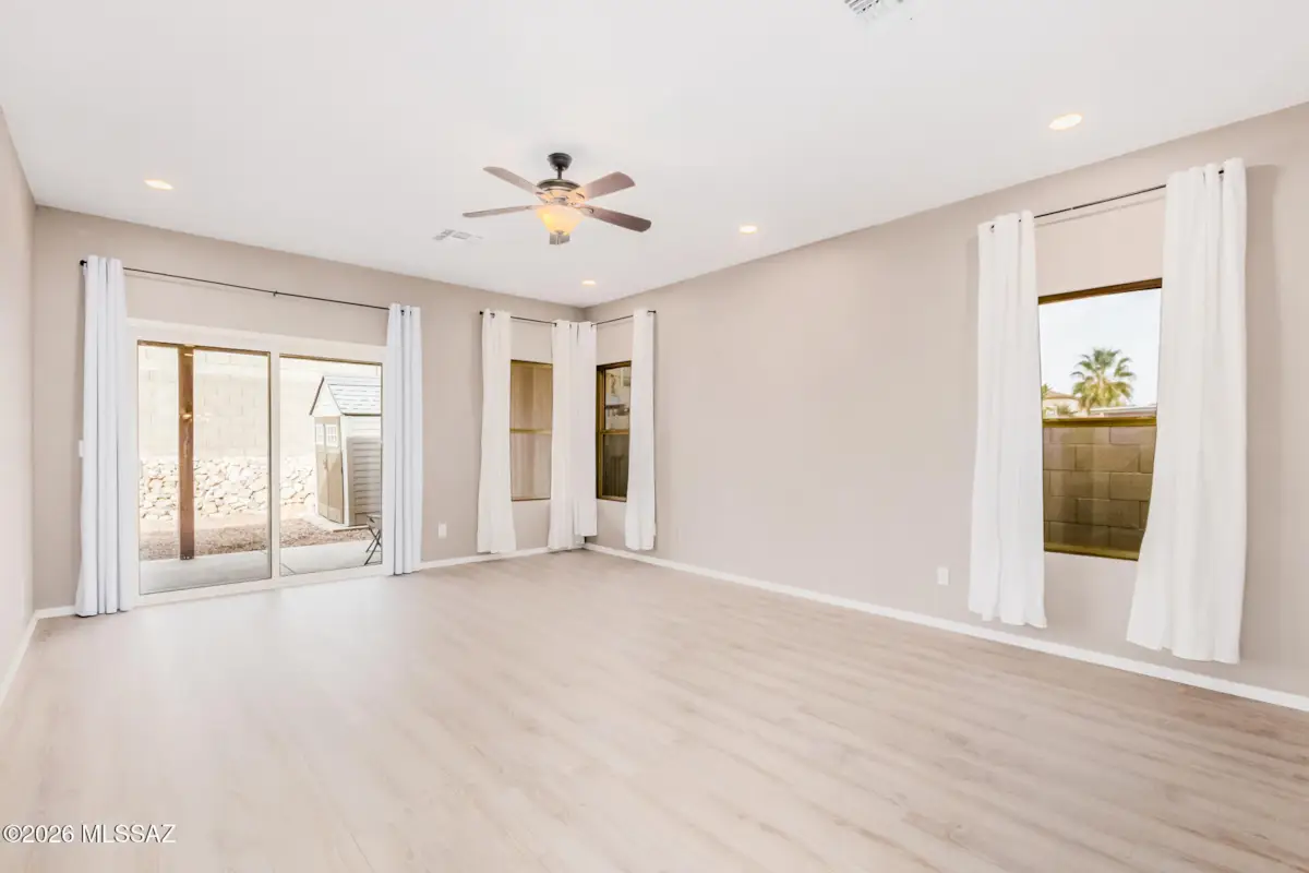 BONUS ROOM WITH ENDLESS POSSIBILITIES! NEW WINDOWS will be installed on the east and west facing walls for added comfort and energy efficiency. Located on a desirable corner lot in Rita Ranch, this spacious 3 bedroom, 2 bathroom home offers 2,481 sq ft of flexible living space with an open concept layout perfect for everyday living and entertaining. Brand new, beautiful flooring runs throughout, creating a fresh and modern feel. The standout feature is the oversized bonus room ready for your imagination. Create a 4th bedroom, home office, gym, playroom, studio, or even a home business space,the possibilities are endless. Step outside to a landscaped backyard with a large covered patio, ideal for relaxing or hosting gatherings year round. Come see your new home in Rita Ranch!