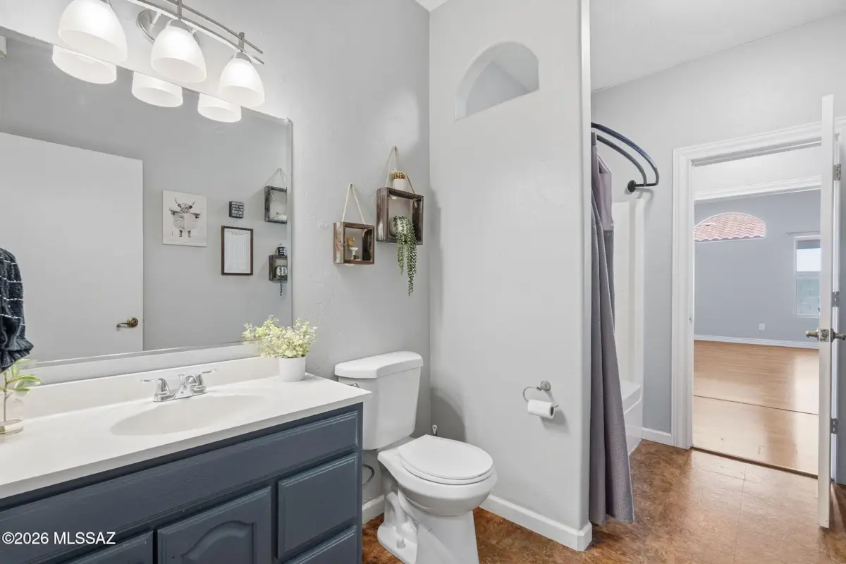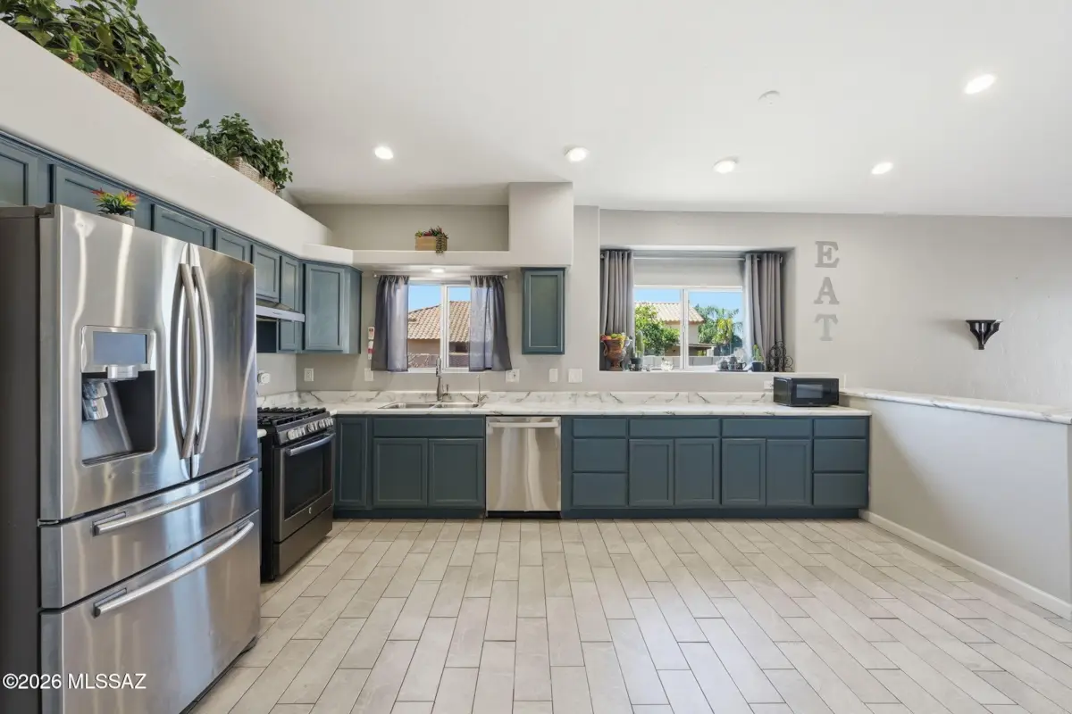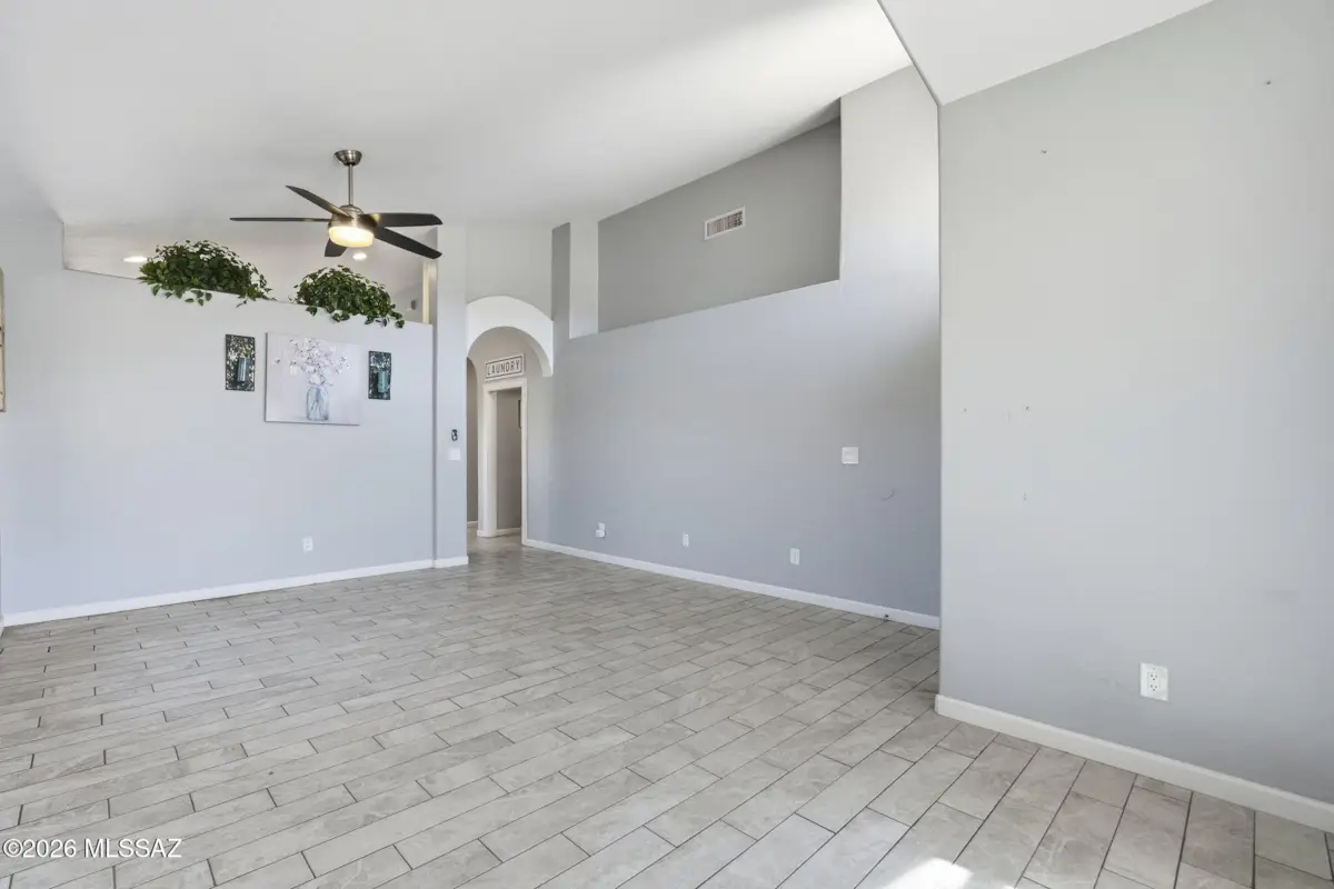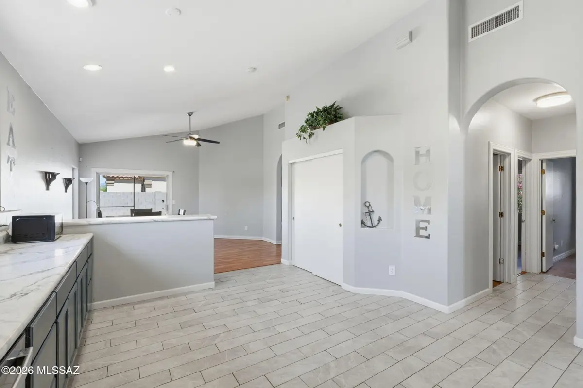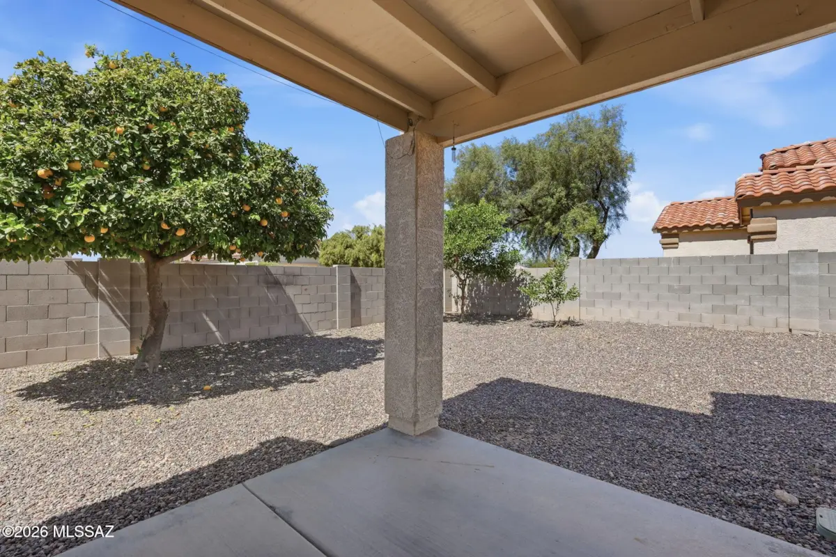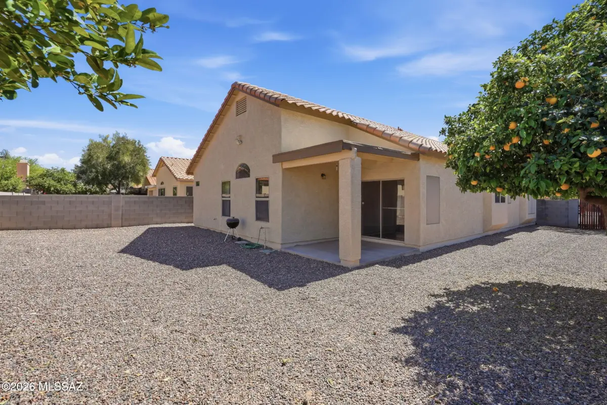 Move-in ready 4-bedroom, 2-bath home in the sought-after Vail SD on a desirable corner lot with a functional split-bedroom layout. Features a separate living room plus an expansive open kitchen, dining, and family room for great flow. The kitchen has been refreshed and expanded with additional counter space. Spacious primary suite includes a walk-in closet and private bath. Low-maintenance flooring with LVP in bedrooms, dining, and bathrooms, and tile in main areas. Garage has built-in storage cabinets and additional space for tools and gear. Backyard features covered patio, easy-care landscaping, and fruit trees, offering a functional outdoor space w/room to entertain. Conveniently located near shopping, dining, and Valencia Rd. HVAC replaced in 2020 and a new water heater.